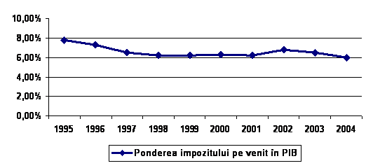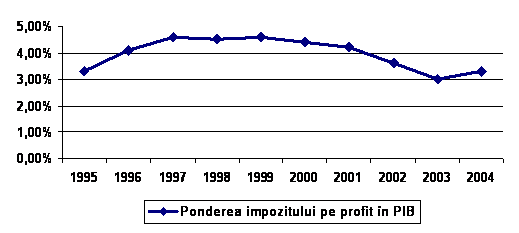 Ponderea detinuta de impozitul pe profit in produsul intern brut in perioada 1995 – 2004 este prezentata in tabelul urmator:
