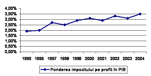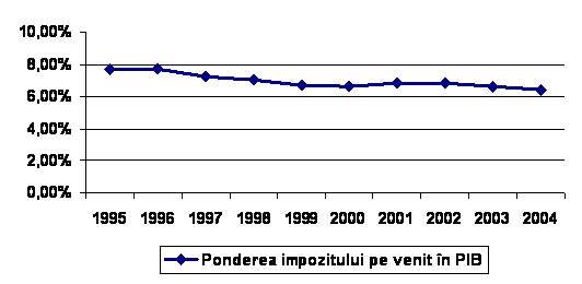 Ca element pe baza caruia se pot emite judecati de valoarea cu privire la randamentul impozitului pe venit, ponderea detinuta de acesta in produsul intern brut in perioada 1995 – 2005 este prezentata in tabelul urmator: