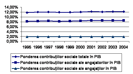Ponderea contributiilor de asigurari sociale in produsul intern brut a evoluat astfel: