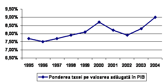 In Ungaria, taxa pe valoarea adaugata are o contributie importanta la formarea veniturilor publice, detinand locul al doilea ca randament, dupa contributiile sociale ale angajatorilor. Ponderea acesteia in produsul intern brut in perioada 1995 – 2004 este surprinsa in tabelul urmator: