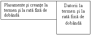 •imunizarea fiecarei creante cu datoriile la termen. Aceasta presupune ca fiecare dintre acestea sa fie contractata in termeni care sa faca egala durata de imunizare a creantei din activ cu datoria echivalenta din pasiv. Cum insa acest lucru este dificil de negociat, in conditiile evolutiei diferite a pietei, ideea de imunizare poate fi urmarita dinamic asupra intregului portofoliu de active si de pasive, contractate la termen si la dobanzi fixe.