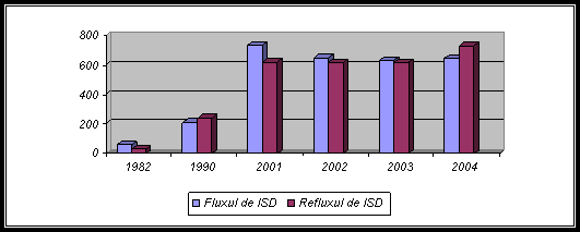 Fig. 1 Dinamica fluxurilor ISD in lume in anii 1982, 1990, 2001-2004 miliarde euro