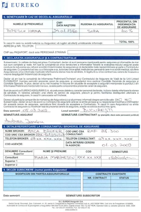 Primele doua exemplare ale cererii de asigurare semnate de contractant, asigurat si consultant, la care se vor atasa actele necesare precizate mai sus, se vor transmite catre sediul central al Brokerului.