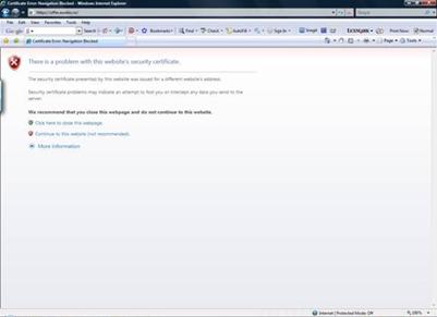 Aplicatia de ofertare pusa la dispozitie de EUREKO Asigurari la adresa https://offer.eureko.ro functioneaza pe o platforma Intranet securizata. Astfel, atunci cand va accesa linkul, utilizatorul va primi mesaje de avertizare precum cele din fotografiile de mai jos.