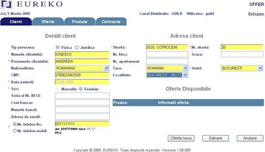 Astfel, in cazul in care clientul a fost deja inregistrat in aplicatie, datele acestuia vor fi copiate automat in campurile obligatorii si pot fi modificate, daca este cazul.