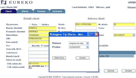 Ofertele de asigurare aferente produsului de tip Unit Linked FLEXINVEST se vor emite din aplicatia informatica pusa la dispozitia sa de EUREKO Asigurari. Aplicatia poate fi accesata exclusiv din locatiile agreate de Eureko conform acestui manual al produsului.