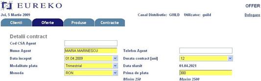 Pasul 11. In continuare, consultantul va discuta oferta de asigurare cu clientul, si in cazul in care acesta din urma este de acord, se va completa cererea de asigurare. Pentru detalii privind completarea cererii de asigurare si celelalte documente aferente contractului de asigurare, consultati capitolul 6.