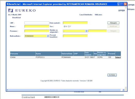 Pasul 8. Pentru a adauga beneficiari la contractul de asigurare, utilizatorul va adauga datele apasand butonul Beneficiari.
