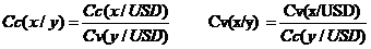 cotarea incrucisata (cross-rate): doua monede care isi exprima cursul initial printr-o a treia moneda, isi pot determina cursul intre ele