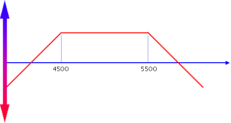 Fie un strangle ce are ca obiect cumpararea de optiuni pe indicele Topix. Se cumpara un call la 4500 cu prima 500 si un put la 5500 si aceeasi prima.