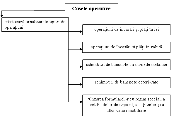 Specificati operatiunile efectuate de casele operative ale bancii.
