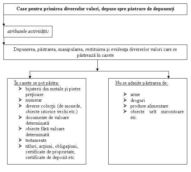 Care sunt activitatile atribuite caselor pentru primirea diverselor valori, depuse spre pastrare de deponenti?