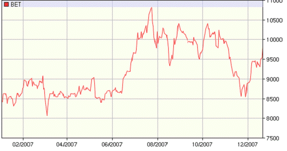 BET inregistra o crestere de 27,5% fata de sfarsitul lui 2006.
