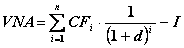 Valoarea neta actualizata opereaza, pe de o parte, cu fluxurile de încasari (amortisment si profit net) si valoarea investitiei, iar, pe de alta parte cu factorul de actualizare. Ca urmare, valoarea neta actualizata (VNA) a unei investitii este egala cu diferenta dintre fluxurile de încasari actualizate si cheltuielile cu investitia (I), adica.