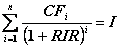 5. Rata interna de randament. Este definita ca fiind rata de actualizare care asigura egalitatea dintre fluxurile de încasari sperate actualizate si cheltuielile de investitii. Rata interna de randament (RIR), practic, poate sa fie gasita rezolvând ecuatia urmatoare, în care necunoscuta este RIR: