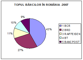 La sfarsitul anului 2007, in Romania functionau 42 de institutii de credit (41 de banci si reteaua cooperatista CREDITCOOP). In ceea ce priveste structura sistemului bancar dupa forma de proprietate a capitalului, doua banci detineau capital de stat → 5,4% din activele sistemului bancar romanesc (CEC si Eximbank), trei erau cu capital majoritar privat romanesc, iar 36 intrau in categoria bancilor cu capital majoritar strain (inclusiv sucursalelebancilor straine), bancile cu capital majoritar privat detinand 94,6% din activele sistemului bancar romanesc. Totodata, ponderea activelor bancilor cu capital majoritar strain,