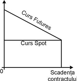 Diferenta dintre cursul de pe piata la vedere si cursul de pe piata contractelor la termen (baza) tinde catre zero pe masura ce se apropie scadenta contractului. În fiecare zi, pe piata futures se realizeaza o marcare la piata a contractelor futures in functie de pretul inregistrat la sfarsitul zilei de tranzactionare. Baza de echilibru (BE) depinde de cursul de pe piata valutara la vedere[3] (CVs), de dobânda de pe piata eurodolarilor (IUSD), de dobânda de pe pietele valutelor (IV) si de perioada de timp (T).