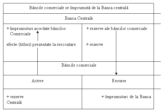 Aceste modificari asupra bilantului bancilor comerciale si al bancii centrale pot fi redate conform schemei 3.1.