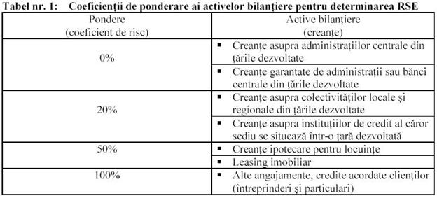 Astfel cu 8 u.m. fonduri proprii pot fi acordate credite de 100 u.m. ponderate cu 100% de 200 u.m. ponderate cu 50% si 500 u.m. in cazul creditelor ponderate cu 20%.