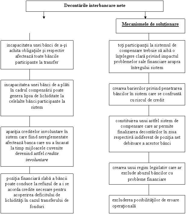constituirea unui astfel sistem de compensare care ar permite finalizarea decontarilor in ziua respectiva indiferent de pozitia net debitoare a acestor banci;