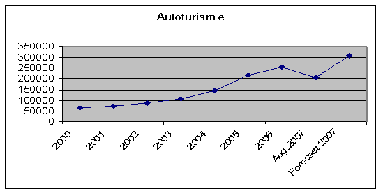 Piata vanzarilor de autoturisme prezinta un segment important. Din grafic se poate vedea ca incepand cu anul 2000 aceasta prezinta o continua crestere a nivelului vanzarilor de la 50.000 de unitati in anul 2000 la 250.000 de unitati in anul 2006. Incepand cu jumatatea anului 2006 nivelul vanzarilor scade de la 250.000 de unitati la 200.000 in perioada anului 2007. De la jumatatea anului 2007 nivelul vanzarilor inregistreaza o crestere semnificativa ajungand la un numar de 300.000 de unitati cumparate.