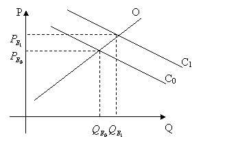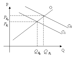 cand cererea este constanta iar oferta se modifica, pretul de echilibru se modifica in sens opus ofertei iar cantitatea de echilibru se modifica in acelasi sens cu oferta: