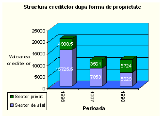 In ultimii ani, strategia BCR in domeniul creditarii acorda o mai mare importantanta sectorului privat al economiei nationale, evoluia structurii creditelor acordate dupa forma de proprietate fiind urmatoarea (exprimate in puterea de cumparare a leului la 31 decembrie 1998):