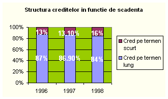 Acordarea cu preponderenta de credite pe termen scurt mai este determinata si de structura resurselor atrase de catre banca, in anul 1997 80 % din resursele bancii fiind pe termen scurt avand exigibilitate pana la 1 an. Asigurarea unei lichiditati corespunzatoare presupune si investirea acestor resurse in plasamente pe termen scurt pentru a pu tea satisface diferitele obligatii devenite scadente prin lichiditati obtinute din aceste plasamente.