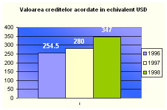 Din cele prezentate rezulta faptul ca desi pe ansamblu, creditele acordate de catre BCR in perioada 1996-1998 au scazut cu 40 % in termeni reali, creditele in valuta au avut o evolutie ascendenta, volumul acestora sporind cu 36 % in intervalul considerat.