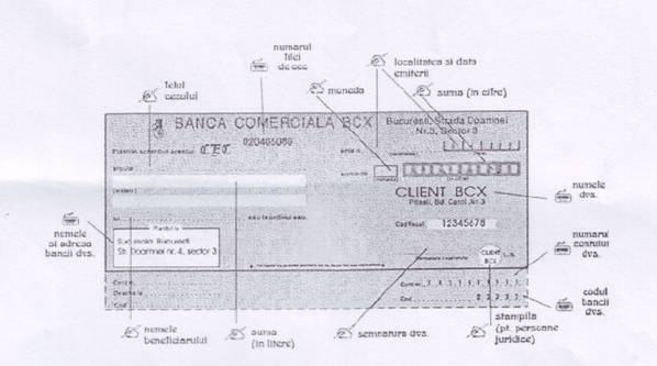 - completarea formularului de cec;