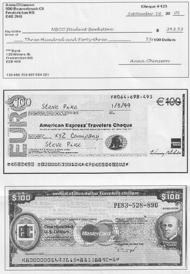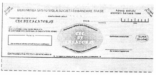 - cec de calatorie (in momentul emiterii unui cec, tragatorul poate conditiona plata acestuia de identitatea dintre semnatura persoanei care incaseaza respectivul cec la prezentare);