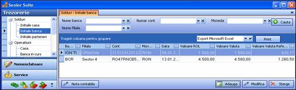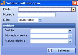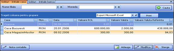 In cadrul acestui submeniu se regasesc soldurile initiale pentru casieriile, bancile si partenerii firmei.