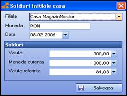 Pentru introducerea unei casierii noi se apasa butonul "Adauga" si se deschide fereastra de editare a soldului.