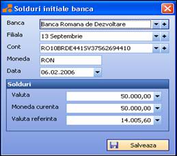 Pentru soldurile initiale ale bancilor se procedeaza in mod asemanator.