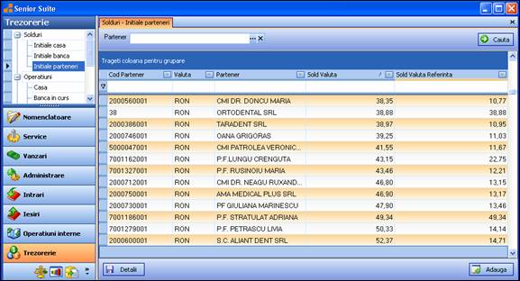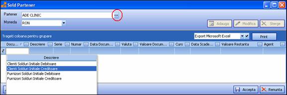 Aceasta fereastra prezinta soldurile initiale ale partenerilor ( clienti sau furnizori ).