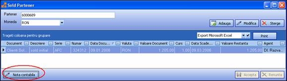 Introducerea unui nou sold pentru un partener se realizeaza prin apasarea butonului "Adauga".