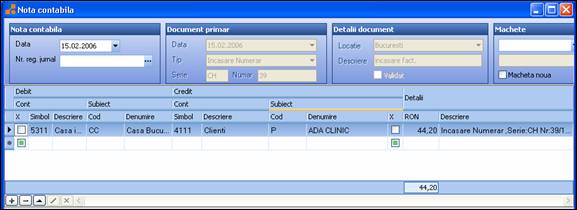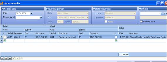 Nota contabila asociata acestui sold va fi reflectata in fereastra de mai jos: