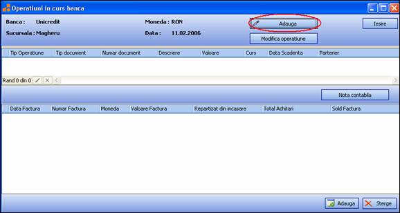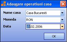 Apasand butonul "Adauga" se va putea introduce o noua operatiune, pentru care trebuie stabilite mai inainte urmatoarele variabile: casieria, moneda si data.