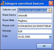 In acest caz, se va selecta un cont corespunzator la adaugarea operatiunii bancare.
