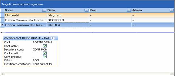 In a treia parte se pot vizualiza conturile asociate unei banci selectate din lista.
