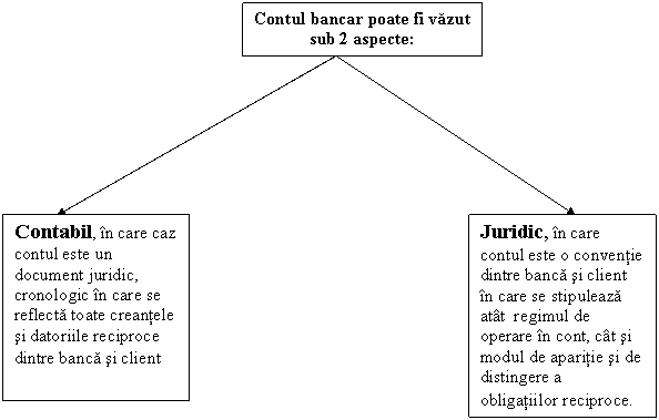 Relatiile care se stabilesc intre banci si clientii acestora, materializate in operatiunile bancare, se reflecta in sistemul conturilor bancare si intr-o forma agregata in bilantul contabil al acestor institutii. Contul bancar este un mecanism de constituire a resurselor si de stingere a obligat 656b13g iilor clientilor in procesul economic, a reflectarii circuitelor in sistemele de plati si compensari, a relatiilor cu diverse entitati pe plan national si international. Principala utilizare a conturilor este aceea de inregistrare, la un anumit moment, prin inscrierea unei sume intr-o parte a contului si la un alt moment in cealalta parte a contului. Aceste operatiuni asigura circulatia informatiei cu un anumit scop, acela de a reflecta decizia titularului de cont. Cele doua parti ale conturilor bancare reflecta drepturi (creante) si obligatii (datorii) ale titularului de cont si sunt denumite in contabilitate debit si credit. Daca titularii de cont sunt diferiti avem de a face cu un transfer de proprietare asupra sumei banesti (plata), iar informatia este denumita informatie-bani. Transferul de proprietate presupune irevocabilitatea platii care asigura finalitatea decontarii si stingerea de obligatii. In orice moment, sumele cumulate (totalul) din debitul si creditul contului se pot compensa si rezulta un sold care reflecta pozitia patrimoniala, adica volumul de creante sau obligatii ale titularului.