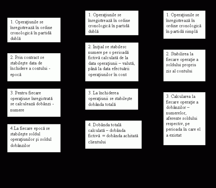 La fiecare epoca se stabileste soldul operatiunilor si totodata soldul dobanzii. Se presupune determinarea numarului efectiv de zile a epocii cat si a modalitatii de determinare a termenului.