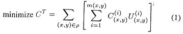 suma costurilor de constructii de la linia 1 pana la linia i care fac legatura intre nodul x si y