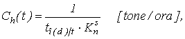 Capacitatea orara a locului de (postului) de incarcare-descarcare exprimata in tone Ch(t) si in autovehicule Ch(a) se determina pe baza urmatoarei relatii: