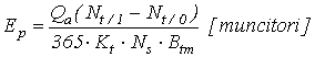 b) Reducerea necesarului de forta de munca (Ep) ca urmare a simplificarii muncii prin mecanizarea operatiilor de manipulare, se determina cu relatia:
