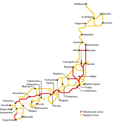 In aceasta tara s-au realizat deja trasee cu viteze superioare (270 km/h, intre Omya si Morioka).
