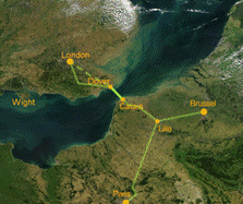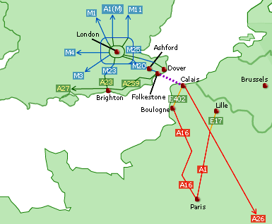 Eurotunelul, construit intre Franta si Marea Britanie (Coquelles, langa Fretun, si Cheriton, langa Folkestone), inaugurat la 6 mai 1994, dar intrat in exploatare in 1995, asigura 22% din actualul trafic, foarte intens, peste Marea Manecii. Tunelul are o lungime de 51,5 km si este parcurs de un tren cu 28 de vagoane (pe care sunt imbarcate autovehiculele), care parcurge distanta in circa 35 de minute in regim de mare viteza, cu 160 km/h.