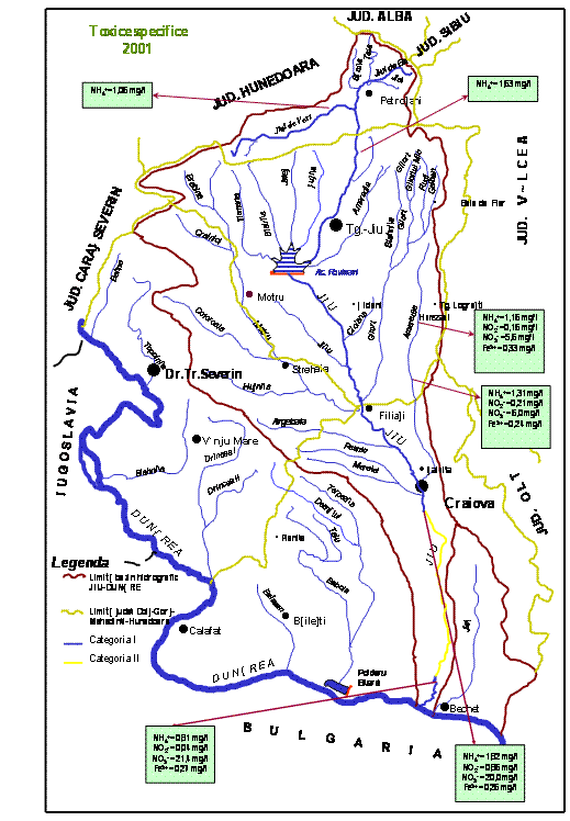 Fig.8.1. Bazinul hidrografic Jiu - Toxice specifice 2001