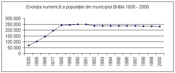 În cadrul retelei urbane, orasul Braila face parte din categoria municipiilor, orase importante cu o populatie numeroasa, care au un rol însemnat în viata economica, politica, sociala si cultural stiintifica a tarii. A fost declarat municipiu la 17 februarie 1968. Astfel, dupa numarul de locuitori, orasul Braila face parte din categoria oraselor mari, cu o populatie de 232.409 locuitori, detinând în acelasi timp cea mai mare pondere a populatiei urbane din judetul Braila. Orasele mari reprezinta 9,2% din totalitatea oraselor si 40,8% din populatia urbana. Aceste orase mari sunt raspândite în toate zonele geografice; unele sunt vechi capitale de provincii, iar altele au beneficiat de pozitia geografica favorabila – cum este cazul orasului Braila.