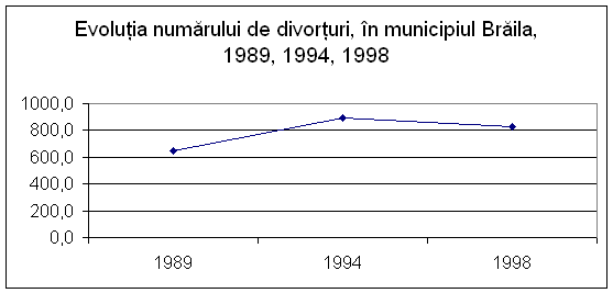 Urmarind evolutia numarului de divorturi între anii 1989 si 1998 se observa ca numarul acestora a crescut semnificativ în municipiul Braila.